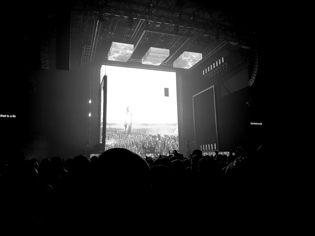 However, once you see it live you realize how wrong you were. The song featured some of the best visuals of the night featuring Matty Healy melting into the jumbo screens. It is the most impressive thing I’ve seen at a gig from a technological standpoint.